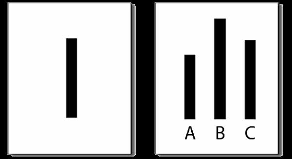 Les complices et le sujet furent assis dans une pièce et on leur demanda de juger la longueur de plusieurs lignes tracées sur une série d’affiches.