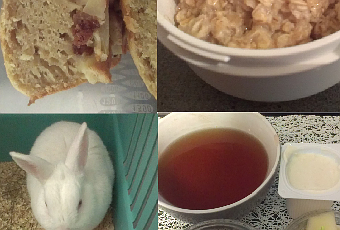On commence en douceur avec une variante du cake framboise/citron version poire raisins secs, le porridge dont je ne me passe plus, super pinou qui voit la faim arriver et un petit déjeuner plein de bonnes choses!