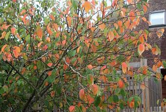 On dit qu'il est caduc après un flamboiement rouge-orangé en automne. Mais Wilipedia qui le décrit sans doute dans la nature chez lui en Asie à 1000m d'altitude dit qu'il perd totalement son feuillage lors de la poussée des bourgeons donc en fin d'hiver seulement et c'est ce que j'observe sur les miens.