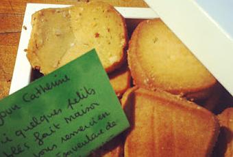 La surprise du jour : une jolie boite de sablés faits maison par un adorable fournisseur de créations papetières (donc rien à voir avec des gâteaux) !