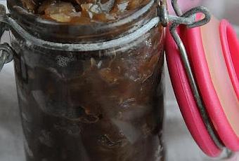Pour environ 120 gr de confit d'oignons:-5 oignons-2 Càs d'huile d'olive-1 Càs de vinaigre balsamique-40 gr de sucre-1 dl d'eau