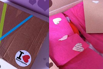 C’était un véritable Noël printanier : une jolie box pleine de petits cœurs et de cadeaux… Et que des attentions choisies avec soin, sincèrement, j’ai été épatée : il y en avait aussi bien pour moi avec le joli collier « cage à oiseaux », le vernis gris et le foulard, pour ma cuisine avec le torchon et le cuit-pomme en silicone, pour ma maison avec la housse de coussin, la pochette argentée et les pinces design ! Et cerise le gâteau, ces petits goodies que j’aime tant avec My little Box : des autocollants, des jolies cartes à messages, des « bons pour » trop mignons et un petit éventail d’extraits du catalogue avec un bon de réduction de 20€.