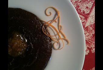 Sur le dessert encore tiède, quelques morceaux d'oranges confites ...