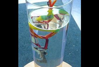 "la Sardine qui flotte" dans la flotte. Enfin en démonstration aux Quat'Sardines: il fallait trouver le contenant adéquat ! quant à l'eau elle provient ni du port ni de la Mer Morte. Qu'on se le dise ici nous ne cèderons pas aux sirènes du kitsch qui réclament la présence d'un poisson rouge dans le vertical bocal, à la rigueur un hippocampe se déplaçant de bas en haut que nous pourrions appeler Archimède (?).