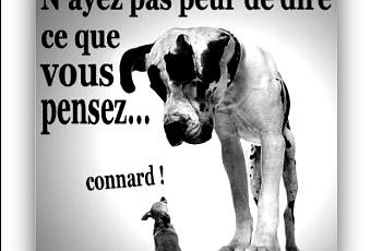 ... dire ce que l'on pense, la photo-montage peut foutre les jetons, car il ne rentrerait même pas dans la dent creuse du mastard qui le surplombe ce petit clebs et pourtant il lui dit "connard".