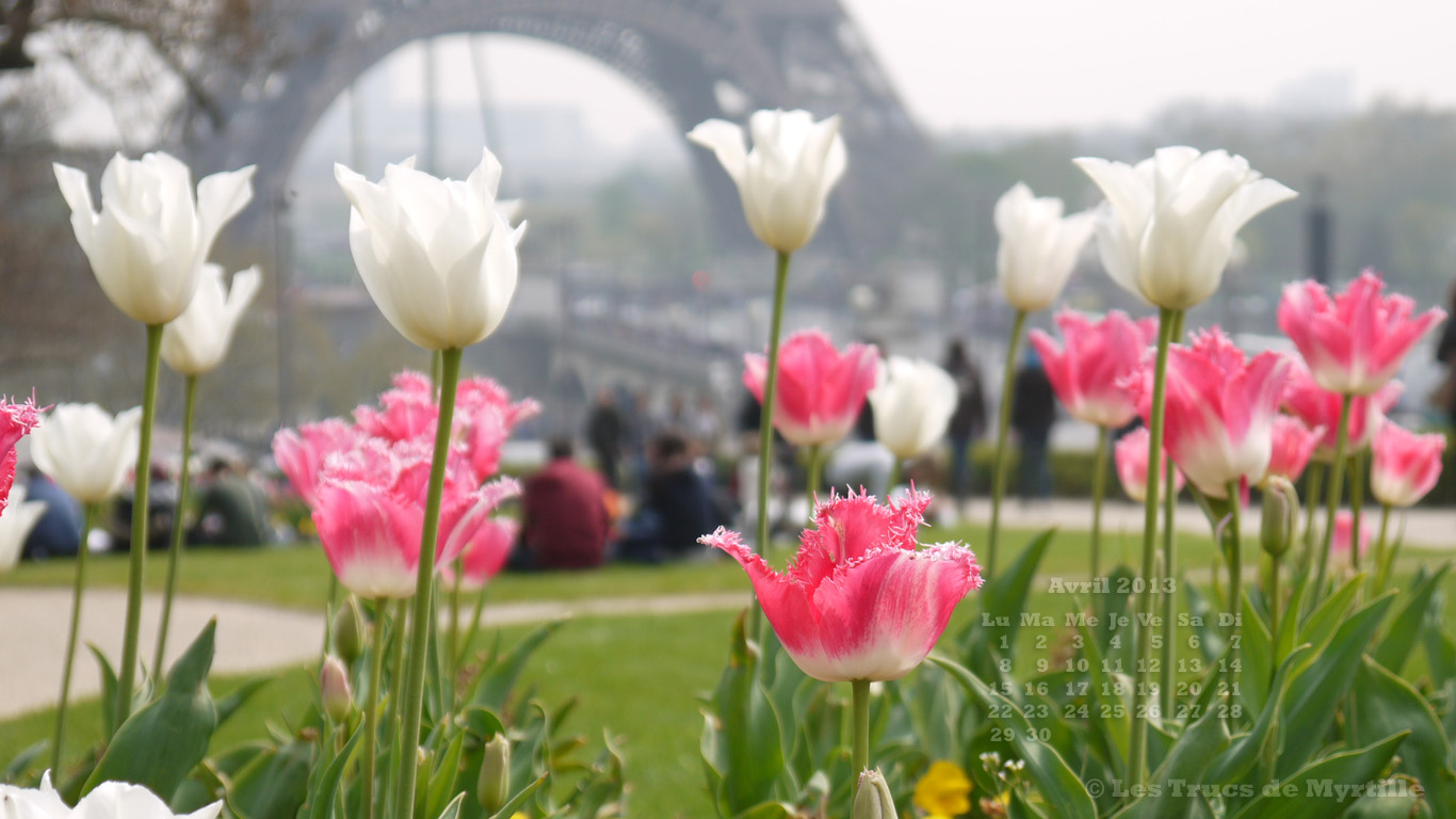 Ce mois-ci encore, j'ai repris un ancien fond d'écran de Smashing Magazine, d'avril 2011, en y réintégrant le calendrier de cette année. J'aurais même pu le laisser tel quel.