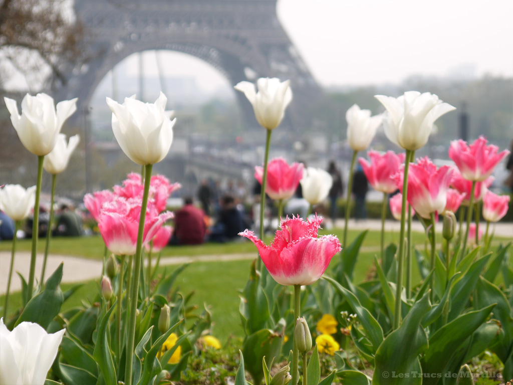 La semaine dernière, les plate-bandes du Trocadéro étaient pleines de primevères mais l'an passé, tulipes et pensées étaient à l'honneur !