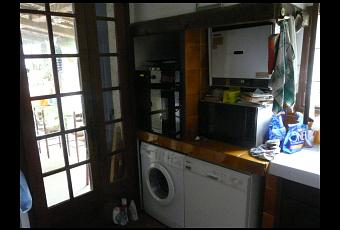 vue du coin des machines avec hotte et chauffe eau au gaz situés actuellement à gauche de l’évier