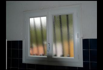Après les toitures, ce sont les ouvrants (fenêtres et portes) qui suivent progressivement un plan de rénovation pour une meilleure isolation, avant même parfois, de refaire les pièces, comme ici, dans une des salles de bains où les courants d’air étaient nombreux…