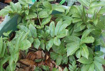 Notre sureau yèble, Sambucus ebulus, n'est pas visible pour l'instant. Il va sans doute garder encore quelques semaines ses rhizomes bien cachés sous terre. Mais les sureaux herbacés "exotiques" sont plus précoces. Les voici aujourd'hui :