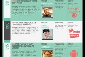 Le premier langage de programmation a été créé en 1883 par une femme, et oui messieurs, par Ada Lovelace. Les langages de programmation vont se succéder au fil des années c'est ce que vous allez découvrir sur cette infographie, vous y découvrirez aussi les créateurs de chacun de ces langages de programmation ainsi que des grands du Web qui sont basés sur ces codes...