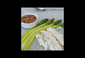 Préparation : 20 minutes Cuisson : 25 minutes Ingrédients (pour 6 personnes) : 2 bars de ligne (environ 800 gr chacun) 24 asperges vertes algues marines (condiment en poudre) 6 huîtres creuses 1 tomate cœur de bœuf 2 échalotes 1 botte de ciboulette thym, laurier 1 verre de vin blanc sec 1 dl d’huile d’olive fleur de sel […]