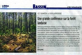 En (P.J) la présentation de la Conférence-Débat sur "La forêt landaise" par Christine Lescoutte-Gardent dans le Sud Ouest Landes du 15 mai 2013.