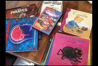 Tout à l’heure, on a fait un tour au vide-grenier du village et on a fait le plein de livres et notamment un sur le corps humain puisque c’est sa passion (du moins pour le moment) !