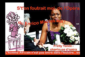 http://www.youtube.com/watch?v=-uKk7jiEYKs À quoi tient cet enthousiasme pour l'opéra ? C'est que, là-bas, de par une forte tradition chorale, chanter est devenu aussi naturel que jouer au Cricket. Ainsi, l'Afrique du Sud dispose–t-elle d'un énorme potentiel de voix remarquables. L'Opéra du Cap, le seul de tout le continent africain à proposer une programmation annuelle, l'a bien compris. Une fois par an, un minibus emmène des jeunes chanteurs - noirs, blancs ou coloured (métis) - sillonner le pays. Leur mission : sensibiliser les élèves au chant lyrique et repérer les nouveaux talents. Le réalisateur les a accompagnés dans ce voyage où l'on découvre l'engouement des jeunes Sud-Africains pour la troupe du Cap et où se révèlent de jeunes prodiges aux histoires touchantes - beaucoup venant des bidonvilles. Et moi... J’en suis encore tout retourne-boulé et zému par la beauté indicible de ces voix décrochées des cieux et tombantes magiquement au fond de mes oreilles. Quel beau reportage, ces mômes des townships, des bidonvilles, chantant le bel canto; soudain, la laideur alentour se transforme en des coulisses dignes de la Scala ; J'en aie la chair de poule tout du long et plein de larmes dans les yeux. Un de ces mômes nous dit: "Lorsque t’as pas les moyens de t'acheter un instrument de musique; ben, il te reste ta voix. " Waouh, ça c’est de l’espoir en barre man ! Et comme toute dynamique il en sort des champions, des très bons, des très bonnes. Pretty Yende; qui a grandie à Thandukukhanya, un township de Piet Retief, dans l'est du pays; est une voix qui prend aux tripes ; Elle a d'ailleurs remportée en juillet dernier le concours Operalia, organisé par le chanteur espagnol Placido Domingo. Ces jours ci, elle réside à Milan, et travaille à la Scala... Et c'est une parmi tant d'autres qui montent qui montent. Je prends le parie que dans 20 ans, le milieu de l'opéra sera excusez la comparaison comme celui de la finale du 100 mètres au JO. Des noirs, des noires partout, car, le réservoir Sud Africain parait sans fond. Des talents qui éclosent énormes en ces bidonvilles frappés par la violence, la misère, le Sida, et le racisme. Pretty Yende chantant du Rossini… Ç’est du tournedos bien saignant. Bref, comme il va certainement faire un temps pourri ce weekend et bien visionnez, écoutez. … Et pendant ce temps-là, l’Darcos « qui n’a pas un bac + 5 qui sert à torcher les marmots » s’assiéra à coté de Giscard le lubrique qui à trac blablatera sur ses coucheries fantasmées avec la Lady d’ail ; le Balkany piquera certainement les couverts en argent, les robinets en or, les ronds de table en platine de chez les rois du pétrole, l’Fredo Lefebvre lui relira Zadig & Voltaire des éditions Spirou, mais en anglais cette fois, et l’petiot Nico, s’posera la question qui le démange et le gratouille depuis juillet 2007 : Comment d'un œuf bien blanc, peut-il en sortir un poussin noir ? Faut dire que son pote l’Enrico lui aussi a buché sur ce couscous-là - purée ! Et l’a rien trouvé l’ Macias ; donc ! Par saint méchoui, Vite, tous au Clavier pour que nous soyons frais et Reno ! Allez, trèfle de blague à papa ! J’vais chanter sous la duche. Georges Zeter/Juin 2013