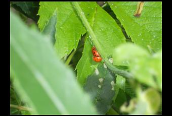 Comme la ville est en mouvement, la végétation anoblie, non plus envahissante mais sauvage et maîtrisée, anime dorénavant les espaces comme le précise un nouvel affichage qui nous avise de la plantation de 4 ha de luzerne. Pour autant, les coccinelles ne se posent pas plus de questions (samedi 8 juin, aux alentours de midi…)