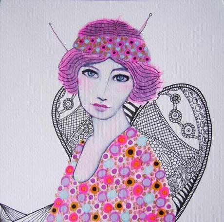 Technique mixte : collage, acrylique et encre noire (qualité archive) pour le dessin. Technique du zentangle ou doodling.