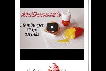 Un nouveau tuto de DebbyArts pour créer un menu complet Mc Donald’s : Hamburger, frites et boisson le tout en pâte polymère :