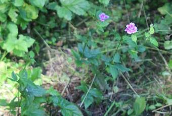 J'avais déjà trouvé le mignon Geranium nodosum dans l'entrée du terrain, dans une zone ensoleillée. Mais cette fois il était en bordure de bois, une zone ensoleillée uniquement le matin, et de plus complètement enfoui sous un épais réseau de ronce bleue. Je pense qu'il va apprécier de voir le jour.