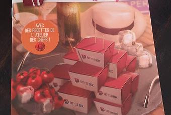 A l'ouverture de la box et comme les mois précédents, on trouve le Mag qui reprend les produits de la box et une recette pour chacun d'entre eux spécialement conçues par l'Atelier des Chefs. Il faudrait vraiment que je réalise certaines recettes car il y en a de très appétissantes : fajitas de gambas, cheesecake framboises/thé vert, brioche perdue en tartelette et carpaccio de pêche à l'anis, etc etc...miam !!