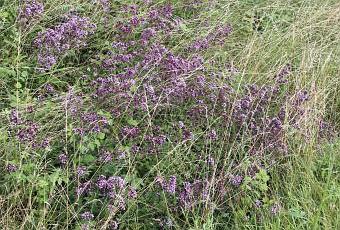 L'an dernier j'ai trouvé quelques pieds à moins d'un mètre, de l'autre côté de la dalle de fonte qui couvre le compteur d'eau. Il n'a donc pu y parvenir que par semis. Maintenant j'ai une longue bordure d'origan le long de la partie carrossée. De l'autre côté de la dalle les pieds d'origine sont toujours présents, petits et sans fleurs. Mais il a sans doute suffisamment fleuri il y a 2 ans pour envoyer ses graines de l'autre côté, là où il se plaît enfin. Les visiteurs sont nombreux :