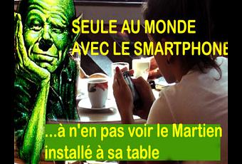 « Moi aussi je préfère rester seule car devant les gens je passe pour un vrai cas. Je n'ai rien à dire voilà le problème donc je suis nerveuse et ça se voit sur mon visage. Et souvent lors des conversations dans un groupe, je rêvasse pendant que les autres parlent car ça ne m'intéresse pas ou alors parce-que les autres m'ignorent (vu que je ne sais pas quoi dire et même si je trouve un truc un dire, je n'ose pas forcément le dire...) Moi aussi je passe beaucoup de temps avec mon Smartphone. Mais que faire d'autre?? »