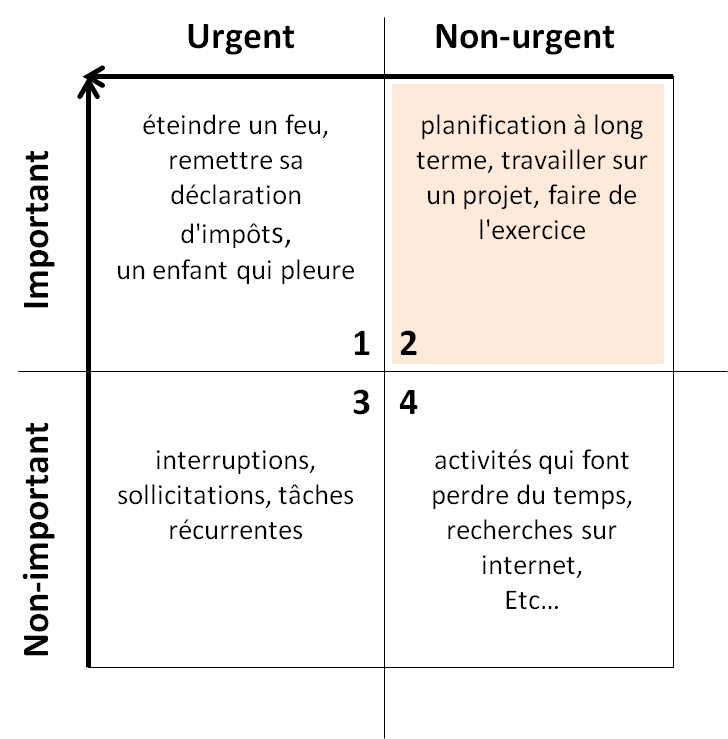 - non-urgent et non-important - activités qui font perdre du temps, recherches sur internet, les possibilités sont sans limite !