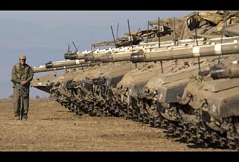 Des chars israéliens postés dans une zone d'entraînement sur le plateau du Golan, près de la frontière avec la Syrie, hier - Menahem Kahana - AFP