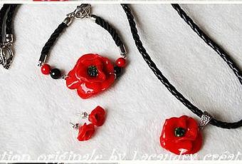 Un collier avec une rose en porcelaine froide (comme les coquelicots)