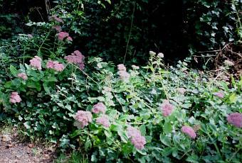 Ce sedum a été planté il y a très longtemps et livré à lui-même et au sable le plus sec. Il n'a pour tout engrais que les feuilles mortes du grand chêne de l'entrée. Et pourtant il émerge du lierre tous les ans.