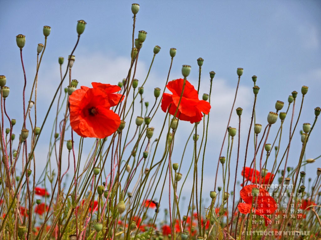 En triant mes photos de cet été, j'ai eu envie de ressortir quelques coquelicots, avec et sans le calendrier du mois d'octobre... et tant pis si mon fond d'écran n'est pas de saison !