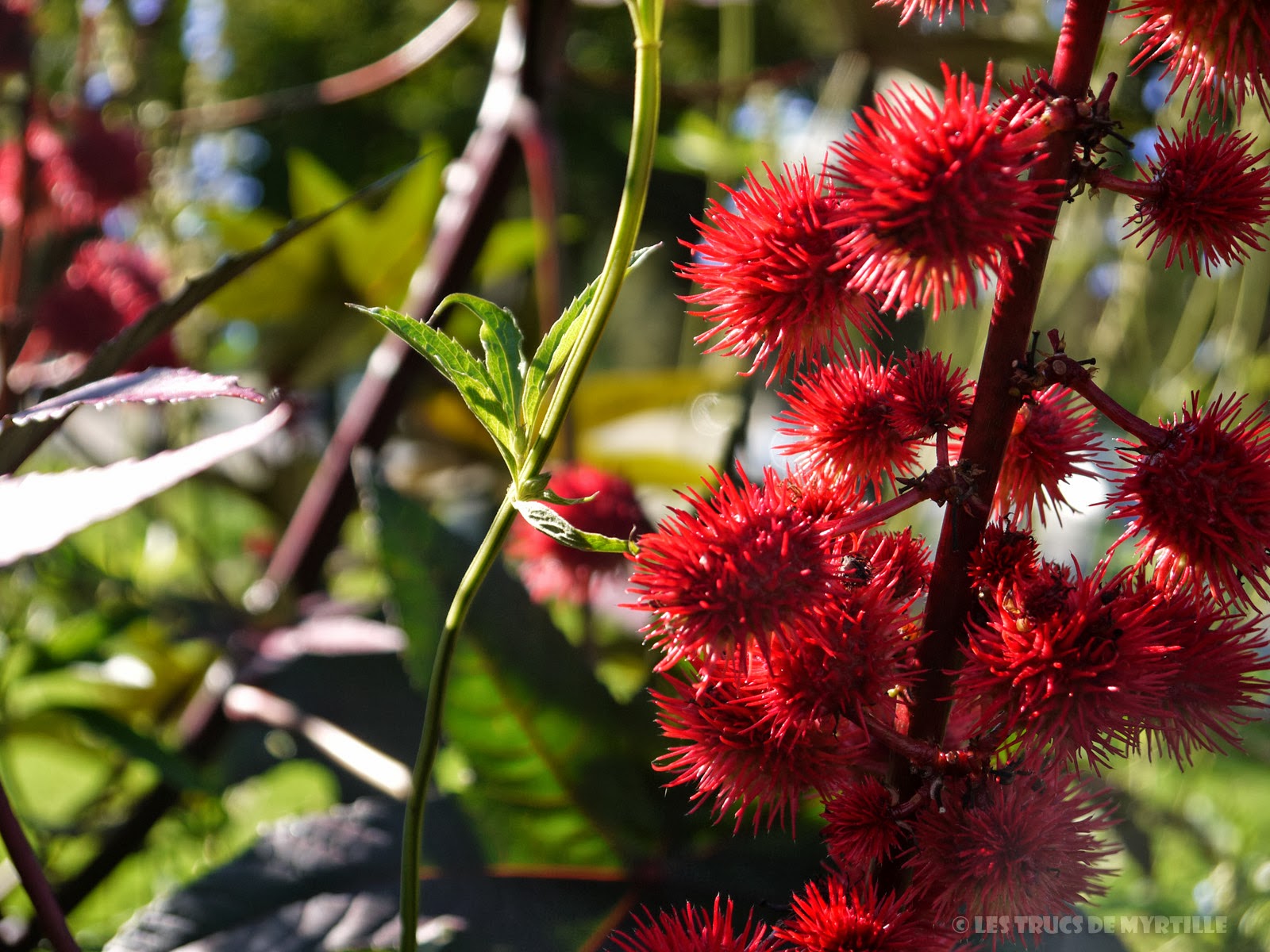 Toujours rouges, et plus de saison, j'ai trouvé à Paris fin septembre des ricins aux fruits flamboyants qui m'ont surpris. (et dont j'ai fait une nouvelle bannière pour le blog)