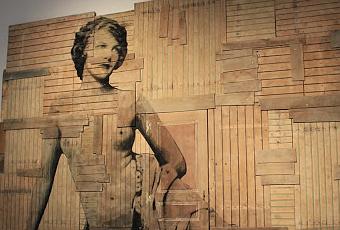 Habitée par le désir d’inscrire dans l’espace de la galerie, les différentes strates structurant le cadre de la narration d’une histoire personnelle, YZ nous invite, avant d’entrer, à ouvrir la porte d’un immeuble d’habitation dessiné sur la façade de la galerie. Dans cet intérieur, règne en majesté l’image d’une femme, plus grande que nature, issue de l’iconographie du 19ème siècle. Le support de cette peinture est constitué de volets, allusion à l’architecture de la façade, supposition suspendue d’un autre univers à découvrir. La femme drapée, l’assemblage de bois anciens, troublent la datation de la scène, assez lointaine pour supporter une interprétation personnelle. Deux points de vue minuscules ménagés à la hauteur des yeux laissent entrevoir des fragments d’intérieur, des visions de ciel et de toits… L’élévation géographique sous-tendue par le titre révèle une progression vers l’intime, métaphore spatiale des concepts psychanalytiques, le Moi circonscrit par le Ça et le Surmoi.