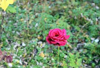 C'est sans doute sa dernière rose de l'année pour ce rosier maigrichon. Mais elle est bien formée et, bien que double, elle laisse bien voir son cœur. Comme toutes les roses elle a de multiples étamines mais ce qui varie chez les roses, c'est l'aspect du gynécée. Ici les styles, et donc les stigmates, sont séparés :