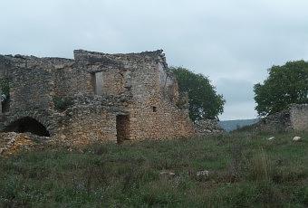 A LAVENE nous admirons quelques vestiges d'habitat rural caussenard. Des sangliers étaient passés près de là dans la nuit, certainement, et avaient fouillé le sol pour trouver quelques racines à manger.