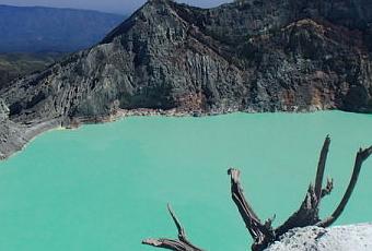 Le kawah ijen (2386 m) se situe à JAVA EST, sur un grand plateau qui est en fait un immense cratère, dominé également par les volcans Mérapi (2800 m) et Raung (3322m)