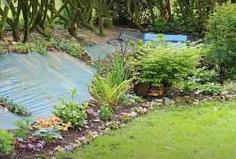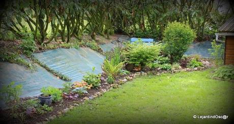 Sur la photo suivante, on aperçoit aussi le lierre qui commence à prendre de bonnes proportions à certains endroits sur le talus. Il va me falloir le guider...