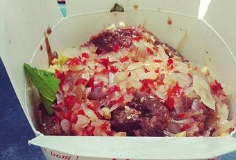 Mais il n’ y a pas que le lieu qui m’a conquis. On m’a emporté un “vrai” Bo bun, en tout cas comme je l’aime. Des crudités croquantes, du boeuf cuit comme il faut (et pas qui ressemble à un bout de caoutchouc). La sauce est épicée et il y a de la coriandre. De plus on est largement servi. Et j’adore les box à l’américaine, j’ai l’impression d’être dans un film.