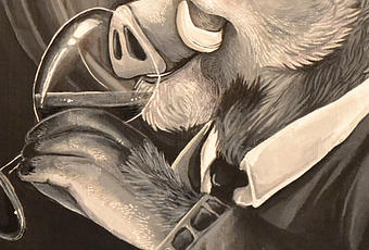 C'est un portrait de lui en sanglier... Je suis un peu déçue par ma performance sur celui-ci ! En fait j'avais fait un croquis plus petit [C'est du A3 celui-ci] et je l'adorais vraiment ! Il était trop chou et hyper ressemblant... Mais comme je suis pas hyper à l'aise en peinture "en pâte" bah... Le rendu est très différent. Mais bon !