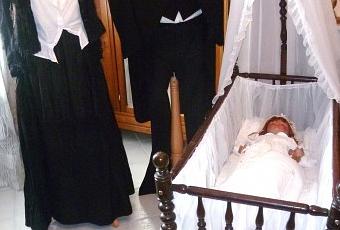Les costumes datent du début du 20 ème siècle. Ils appartenaient à ses grand-parents et aux grand-parents de sa femme.