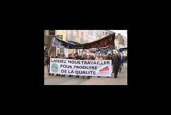 Ça me rappelle ce qu'il s'est passé au Chili en 73, bien sûr en France la CIA n'est pas derrière tout ça, quoi que ??? Avec ce que Glenn Greenwald va balancer bientôt on ne serait peut-être pas étonné de l'apprendre un jour (la déstabilisation de l'Europe et de sa monnaie unique). Je pense au Chili car c'est avec les camionneurs que ça avait commencé. Ils sont dans le mouvement chez nous aussi avec l'écotaxe pour laquelle personne n'avait moufté lors de son adoption en 2009. Là, dans notre doulce France, ça manifeste sec depuis quelques mois, ça a commencé avec les culs bénis et autres jean-foutre rétrogrades, tous les "contre" le mariage pour tous. Alors aujourd'hui, tout le monde est sur les routes, devant les lycées, dans la rue et aussi à Mont-de-Marsan ce jeudi 05 décembre, là, par contre c'est à mourir de rire quand je vois sur la banderole de la FDSEA (syndicat de droite agricole) le slogan que je vous laisse lire en haut à gauche.