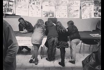 Là, sur la photo on croit que je n'ai personne mais en fait je n'ai personne - c'est juste que le dessinateur d'à côté dessine des Dragonball ! ah jeunesse !