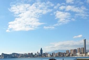 L'apparition. - Ce qu'on voit soudain là-bas le long de la côte, au détour d'une colline pelée surplombant la route venant d'Alicante, relève d'une sorte de fantasmagorie visuelle, comme on le dirait d'un mirage et produisant le même ébranlement physique et psychique qu'à la découverte, surgi de la plaine texane, du fascinant massif de buildings de marbre et de titane de Houston downtown ou encore, d'une rive à l'autre de l'Hudson, de la prodigieuse échine de Manhattan découpant le ciel au ciseau vif, à cela près qu'on ne voit ici, à l'horizon, qu'un frémissement argenté sur fond de bleus délavés, bientôt effacé par les premiers plans de terre aride...