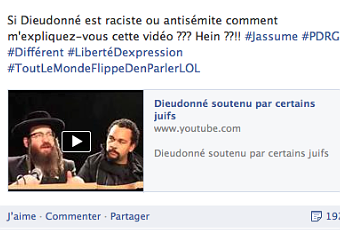 Du coup, quand je vois l’esclave Boubakeur donner lui aussi sa définition de la quenelle, j’ai comment un sentiment que le ridicule ne tue pas vraiment. Pour lui donc, "La "quenelle", "geste hybride entre le salut nazi et le bras d’honneur inversé"". Un vrai humoriste. Il ne faut plus qu’attendre l’avis de l’imam de la république, Hassen Chalghoumi, pour que la boucle soit bouclée. Vous les entendez dire un mot quand les musulmans sont massacrés en Syrie par cette horde de barbares financés par l’Occident dont la France ? Le rappeur pose une question pertinente. Pourquoi certains juifs soutiennent Dieudonné ? Les détracteurs de l’humoriste vont botter en touche…