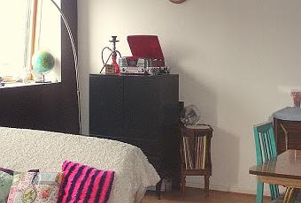 La déco est un mélange de vintage&rétro, de rock, d'Alice aux pays des merveilles et de kawaiieries. Il y'a le fameux bahut et la table des années 60.Le vaisselier jaune. La collection de vieilles console et vieux jeux vidéo.L'affiche "Wonderland", première pièce d'un triptyque. Un gros chien et un Boy.