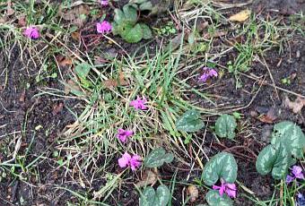 Quelques années après Cyclamen hederifolium et devant le succès de ce premier cyclamen, j'ai planté Cyclamen coum pour prolonger l'époque de floraison.