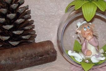 Boule à déposer avec comme décor une petite elfe et sorcière