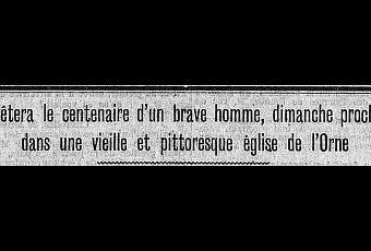 L’article brosse ainsi le portrait de ce monsieur, "fils de journalier, et journalier lui-même" dans un village situé à 12 km d’Alençon. Le papy, en bonne santé quoique un peu dur de la feuille, vit alors chez sa fille. La municipalité lui a organisé une fête d’anniversaire dans l’église du village, et c’est là que l’article prend un tournant : il n’est plus question du monsieur, mais de l’église romane, décrite pendant plus de la moitié de l’article.