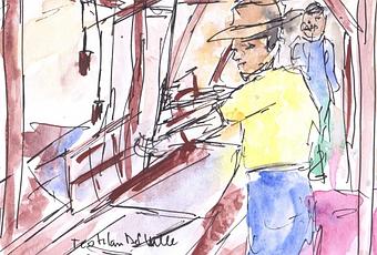Nous visitons à Teotitlan_de_Valle, un atelier de tissage de tapis teints avec colorants végétaux.