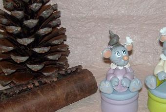 Boîte ronde en bois avec p'tite souris pouvant servir pour les dents de lait